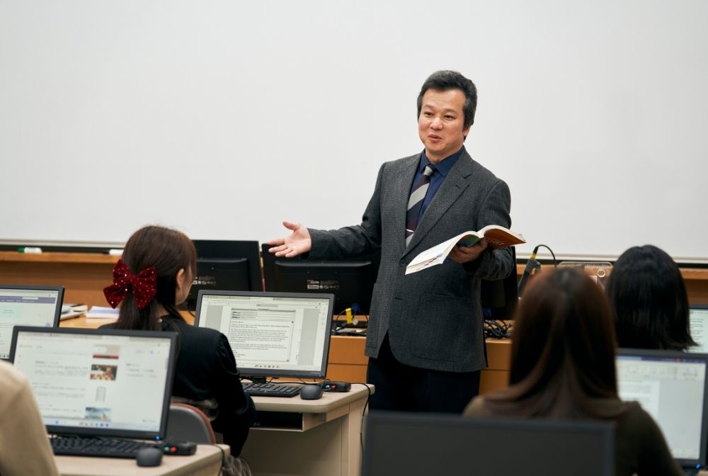 主な英語の授業では、1クラス約15名という規模で少人数教育を行っています。これが英語コミュニケーション学科の第一の特徴です。少人数制の利点を活かして、実践的な英語力を身につけることができます。