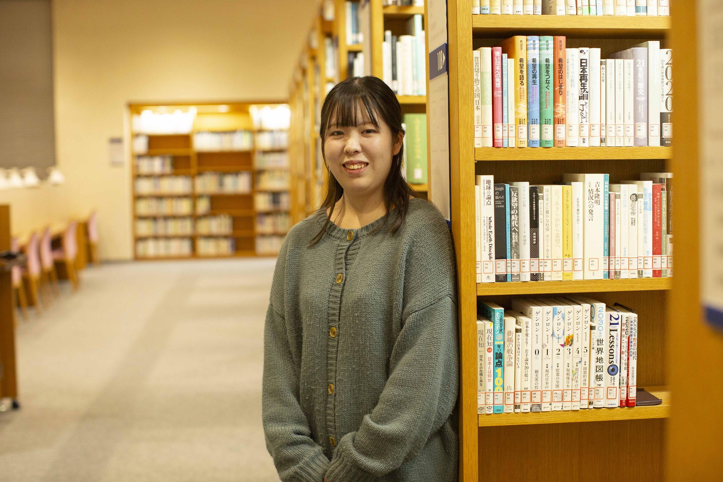 私が研究テーマに選んだのは、「博学連携」です。これまで、文献情報を調べるときは限られたサイトを使っていましたが、この授業で図書館の情報収集ツールを活用してさまざまな方法でリサーチすることで、いろいろな角度から多くの資料を探し出せることが分かりました。授業を通して培ったリサーチ力を、卒業論文に取り組む際に生かしたいと思います。また、自分で設定した課題を探求することで、一人で問題を発見して研究を進める力、プレゼンテーション力を身につけることができました。大学卒業後は、地元に戻って就職したいと考えています。リサーチを通して、地元が抱える問題の大きさを理解する一方で、地元の新たな魅力を再発見できました。同時に別の進路も見え、選択肢が増えたのは大きな成果です。