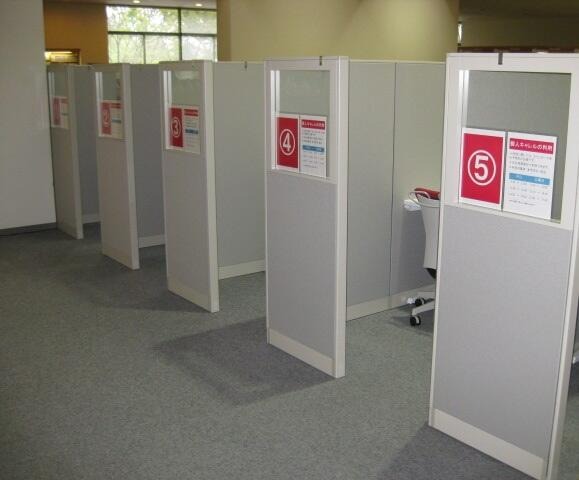 ノートPCが備え付けられた半個室型のキャレルが5席設置されています。利用する時は、web上の予約システムで利用手続きをしてください。