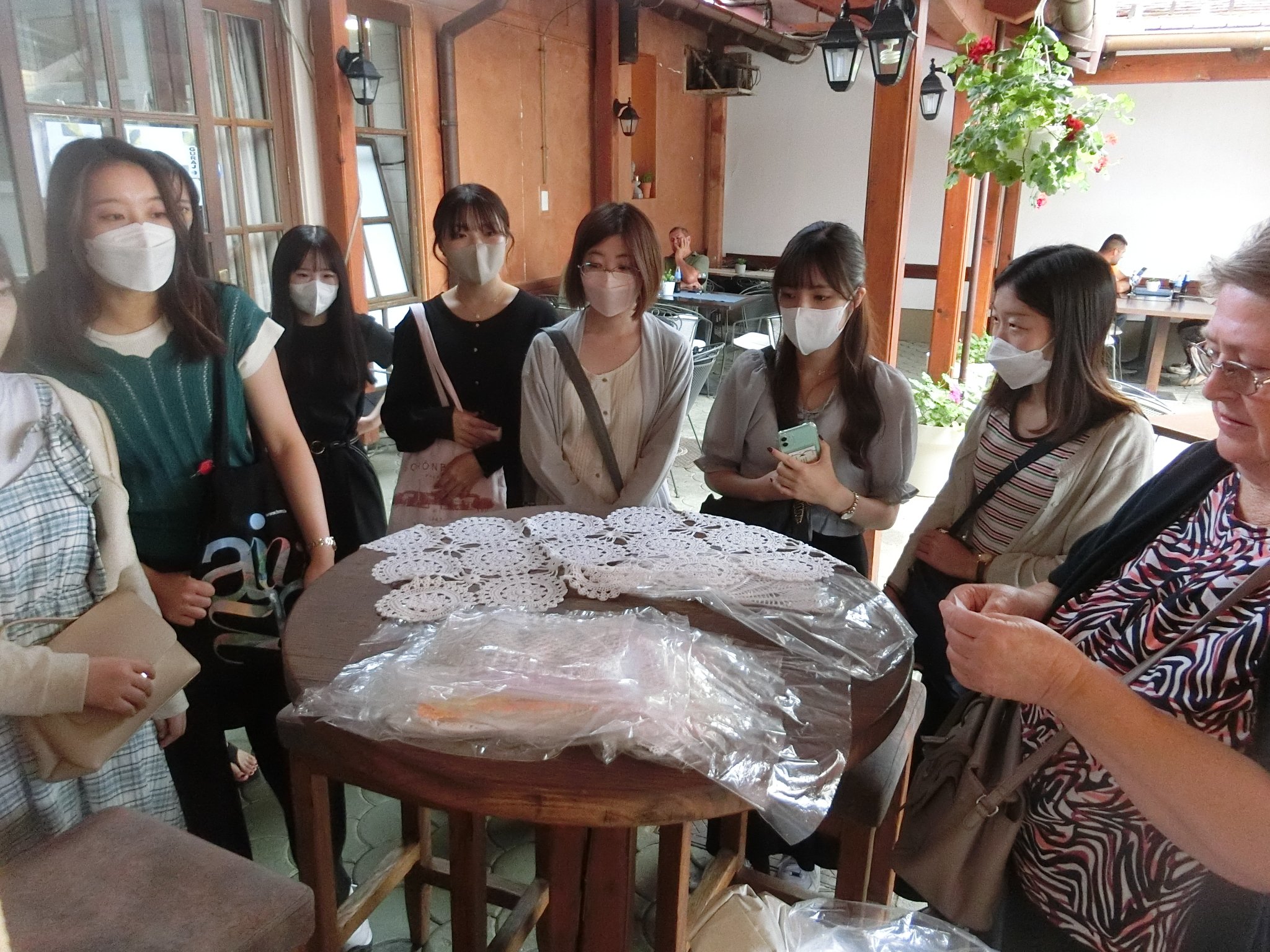 長年、マラ・ゴリツァ村の日本難民センターに居住していたボスニア出身の女性との3年ぶりの再会を果たすことができました。いつものように綺麗な手製のレース編みを披露して下さり、お土産代わりに購入した研修参加者もいました。