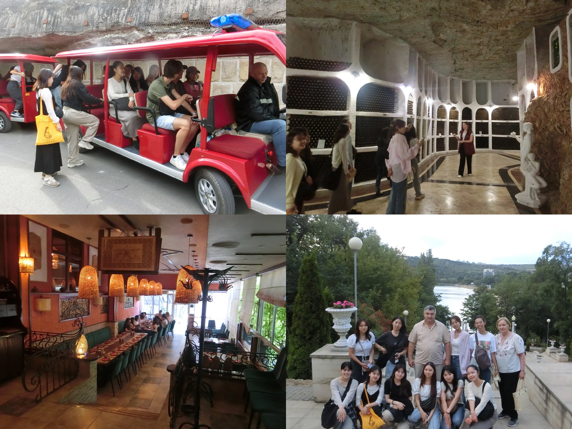 【中欧研修12日目】日曜日には首都近郊のクリコヴァの広大なワインの貯蔵庫を小型車に乗って見学しました。ジョージア料理店で昼食を取った後、首都キシナウ市に戻り、ソ連のブレジネフ書記長の時代に造られたヴァレア・モリロール公園を散策しました。