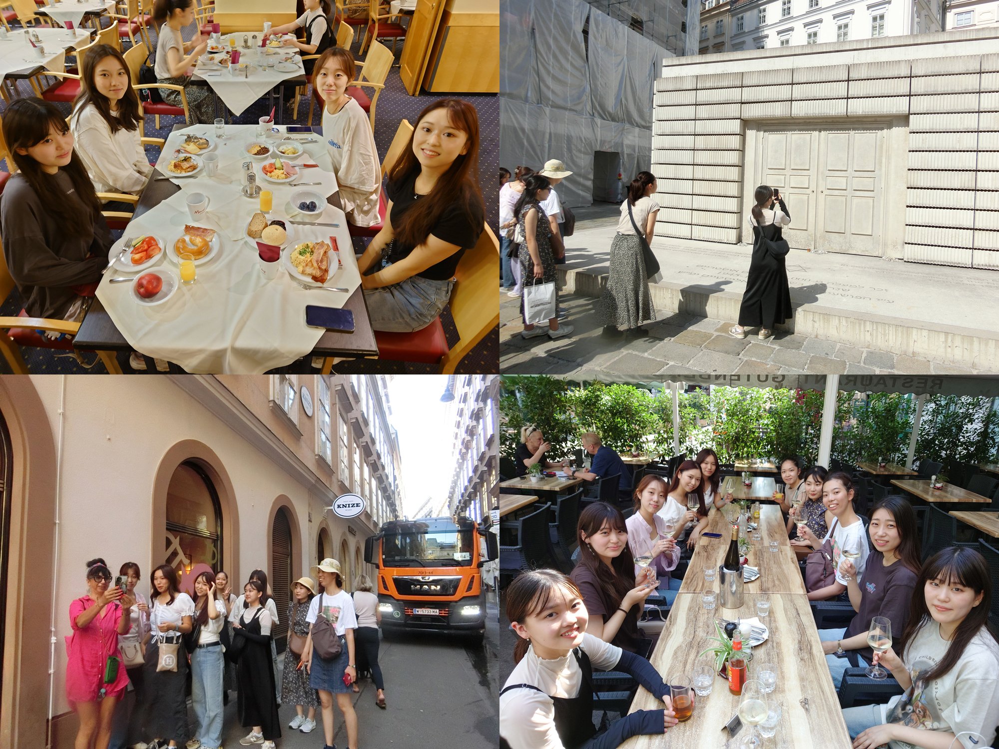 【中欧研修2日目】ホテルで朝食後、ウィーン中心部の聖シュテファン大聖堂、王宮とユダヤ広場を訪れた他、本研修で初めてユダヤ博物館も見学しました。昼食では地元のワインとザッハートルテを味わいました。歩いているとよく声をかけられ、一緒に写真を撮ったりもしました。