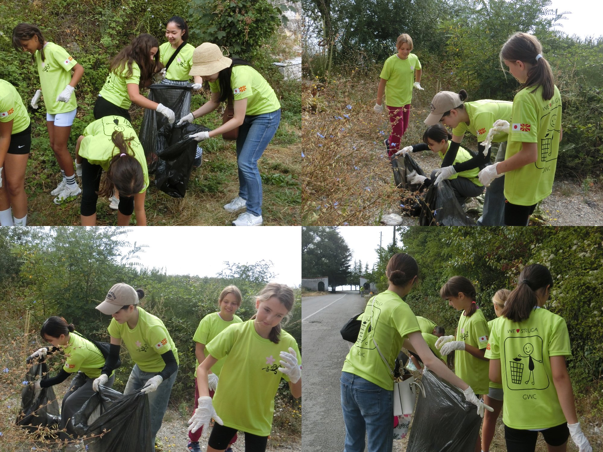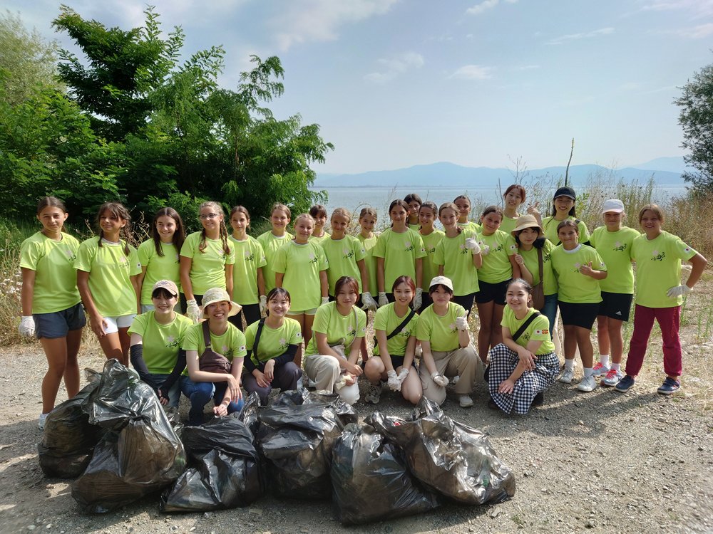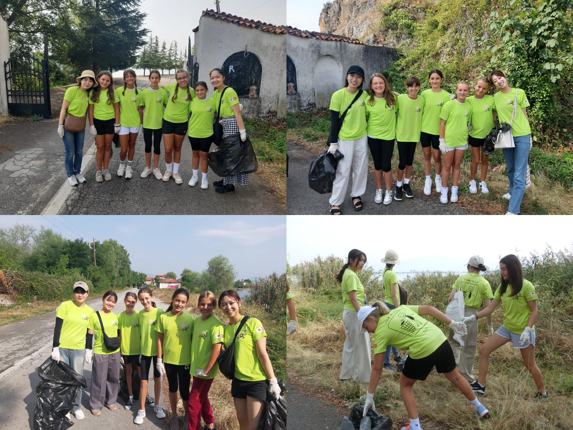 オフリド湖畔には観光客が多数集まるため、多くのゴミが落ちています。学習院女子大学の学生たちはマケドニア人の生徒たちと協力し合って、拾い集めるべきものはしっかり集めて、少しでも綺麗になるように努めました。
