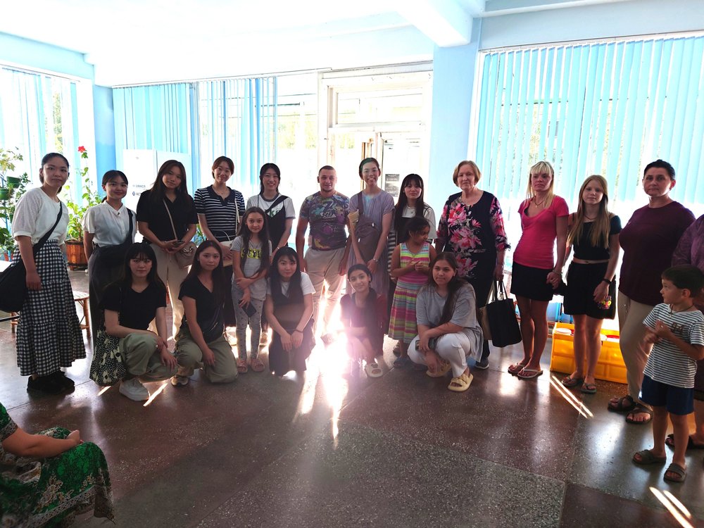 学生寮の入り口では、ウクライナから避難し、こちらで生活している人たちと一緒に集合写真を撮りました。この機会に避難民が居住している質素な部屋も見学させていただきました。