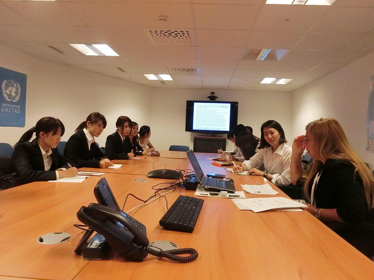 その後、UNCTADのもう一人の専門職員のMs. Simonetta Zarrilliより英語でジェンダーや開発に関するブリーフィングを受けました。