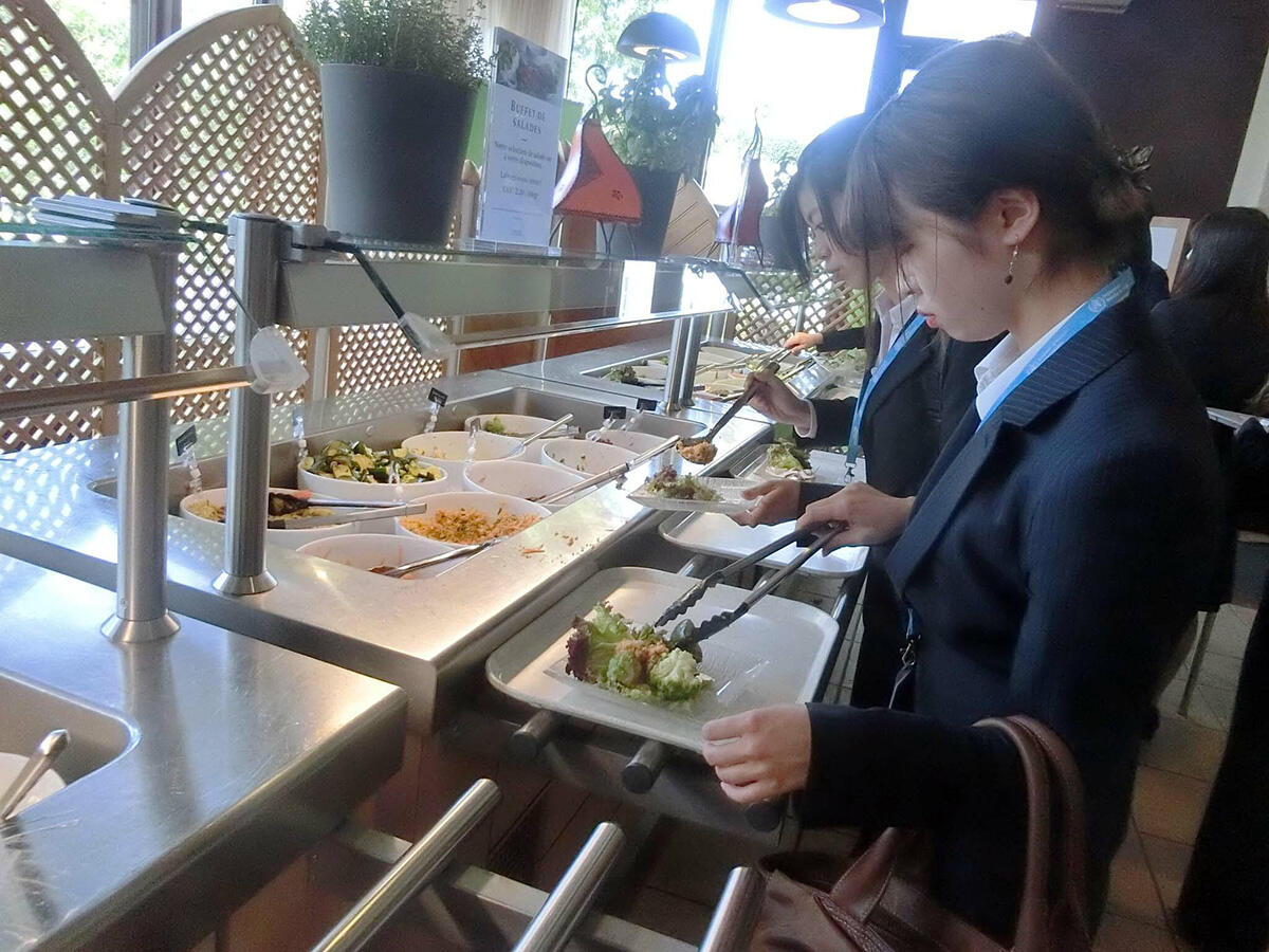 3日目はWHO(世界保健機関)を訪れ、木阪有美さんと牧野由佳さんよりWHOの概要やご専門の口腔医療などに関する熱のこもったブリーフィングを受けました。昼食はWHO内の食堂で済ませましたが、さすがにWHOならではの健康的なメニューが揃っていました。