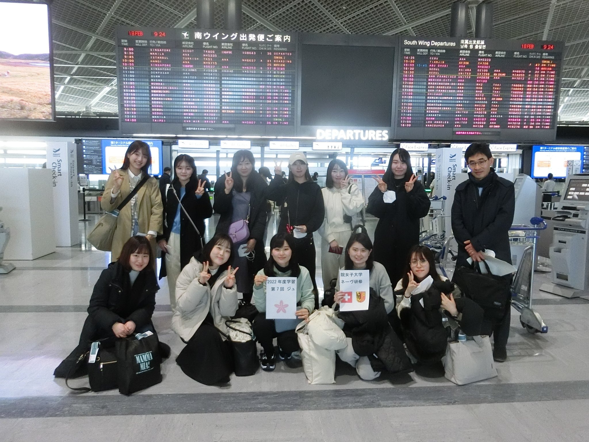 学習院女子大学第7回ジュネーヴ研修は2023年2月18日に始まりました。日本文化学科、国際コミュニケーション学科の学生、及び、国際文化交流研究科修士課程の大学院生がスイスに向けて出発しました。