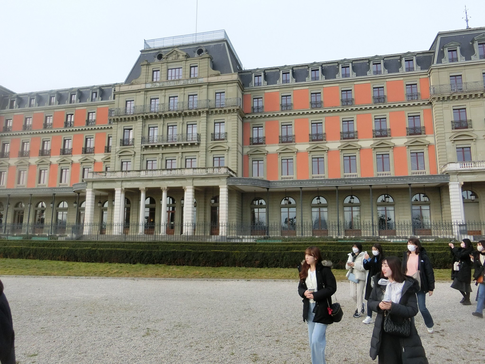 レマン湖に面する趣のある旧国際連盟本部(ウィルソン宮殿)の前も通りました。「1919年4月29日、パリ講和会議は満場一致でジュネーヴを国際連盟の本拠地に決めました」というプレートも目にして、まさにこの場所で国際連盟の歴史が始まったことを実感しました。