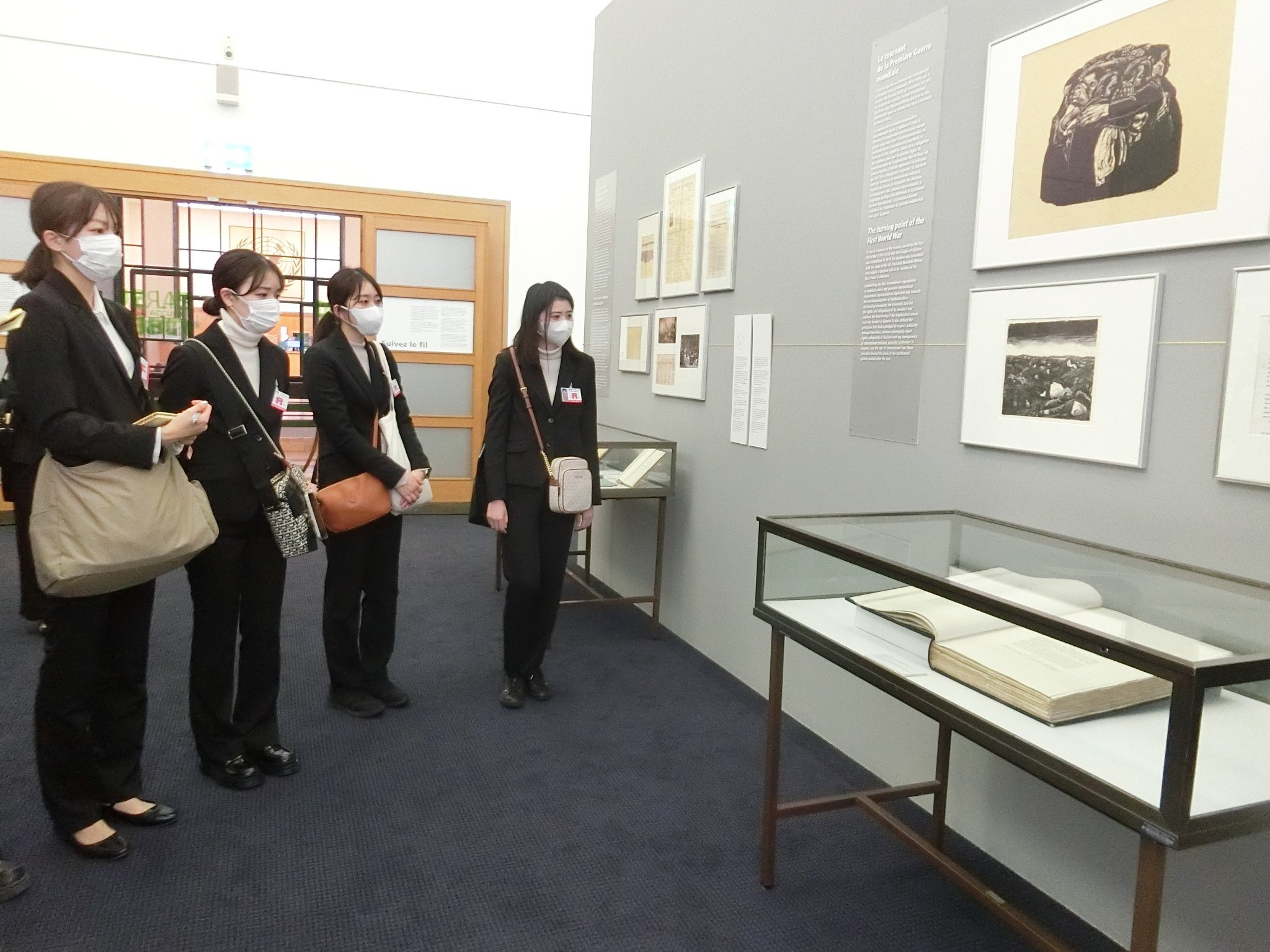 別の日に再度、国連欧州本部を訪問しました。同じ建物の中に国際連盟博物館が併設されており、こちらを見学しました。マルチラテラリズム(多国間主義)をキーワードに展示されている創設期の国際連盟の概要に関する説明を受けました。