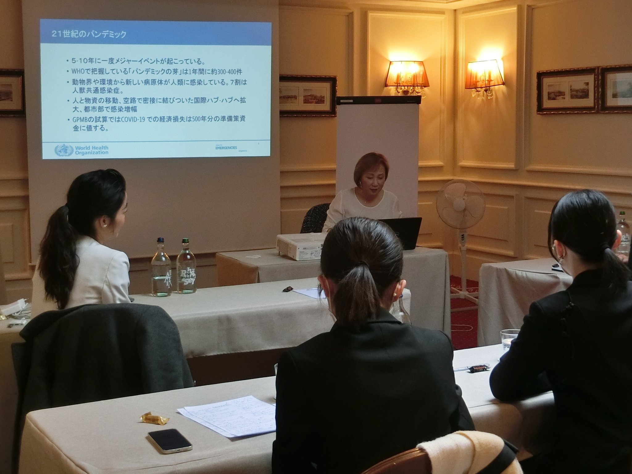 WHOのセッションも3名の第一線でご活躍の方々からお話を伺うことができ、大変充実したものとなりました。感染症の専門家で2020年春以降に時折、日本のNHKのニュース番組でもインタビューを受けられていた進藤奈邦子先生のブリーフィングを受ける機会にも恵まれ、世界全体の感染症の流れを俯瞰することができました。