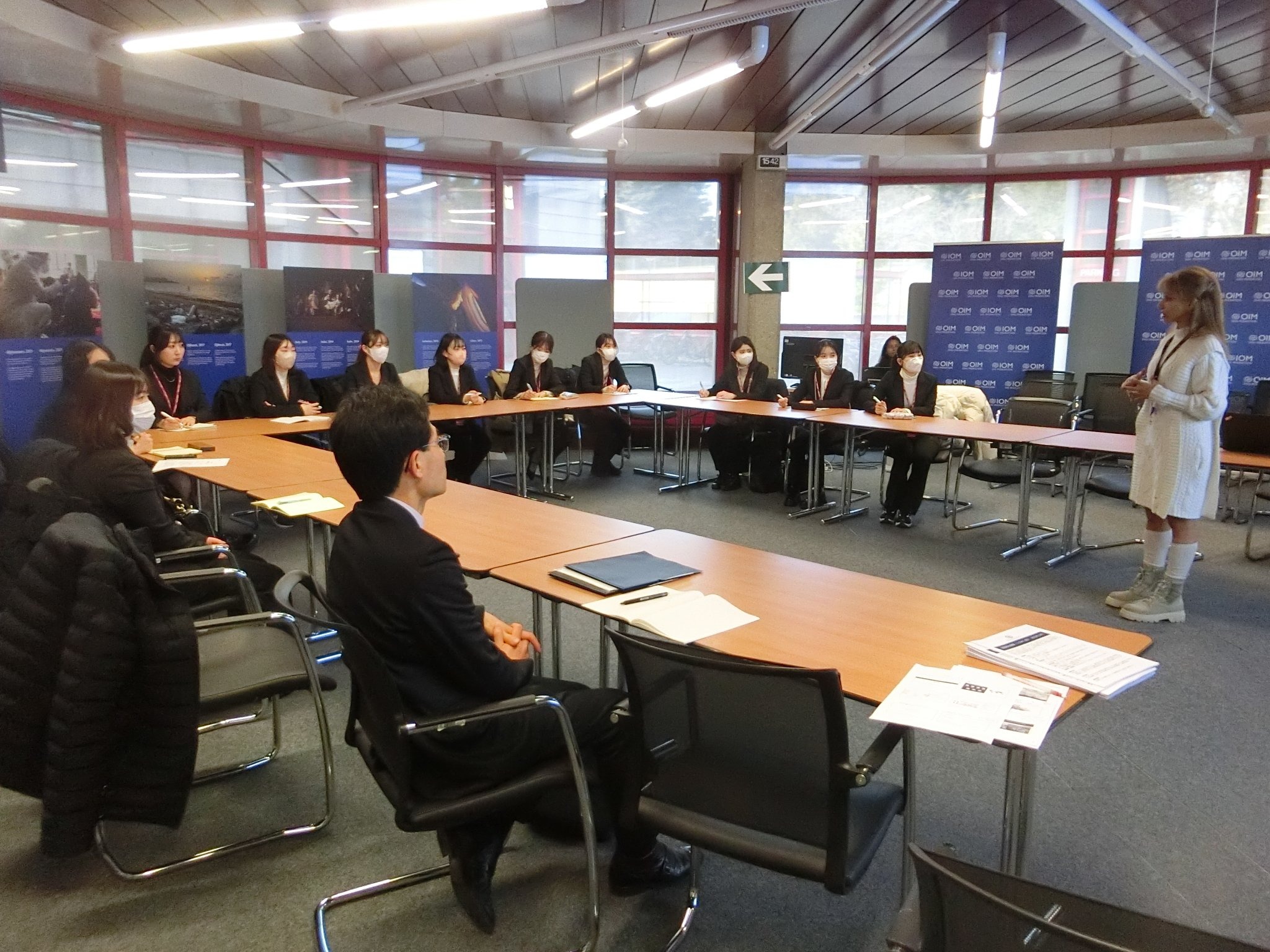 IOMでは3名もの方々よりブリーフィングを受けました。まず若手の職員よりIOMの概要を英語で詳しくご講義いただきました。