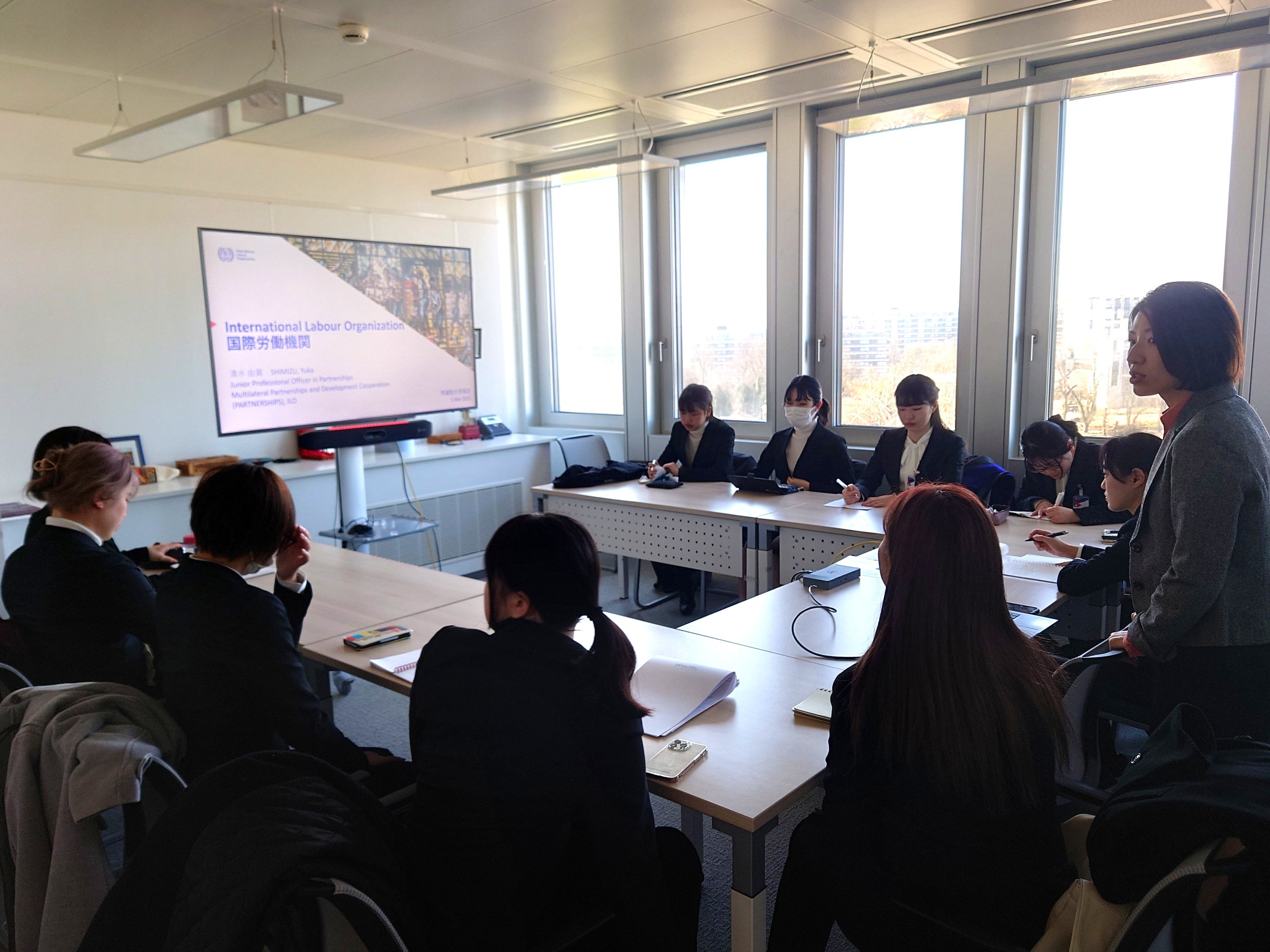 会議室での充実したセッションで貴重なお話をして下さったのみならず、ILOの施設も案内していただき、ILOへの理解も一層深まりました。