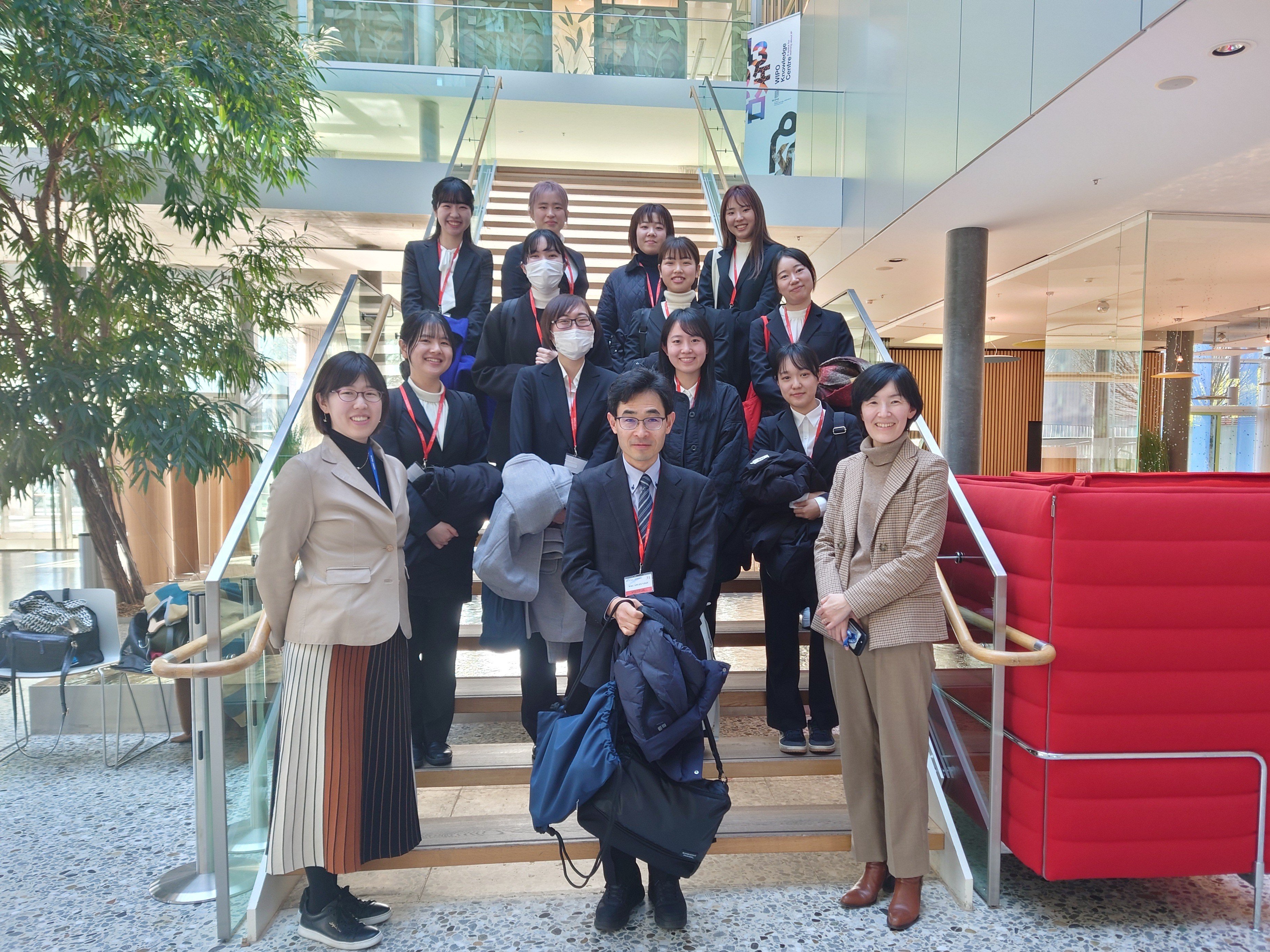 中堅で活躍されているモンルワさんと若手の金高さんとのセッションでは質疑応答も活発になされました。モダンなWIPOの建物の階段部分で記念写真も撮らせていただきました。