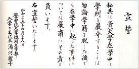 短大の開学式で新入生の代表が読んだ宣誓書。