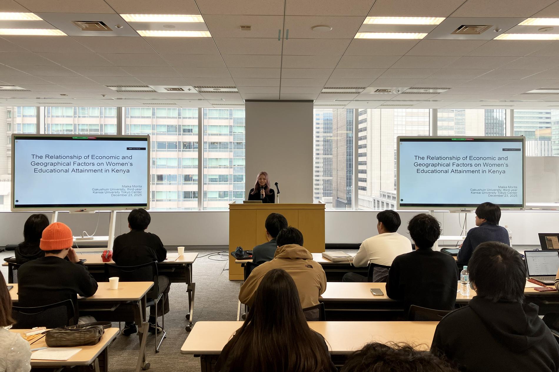 2025年度のゼミでは、アフリカやアジアを対象に、幼児教育、栄養や食糧不安、児童労働、女子教育や早期婚、外国援助やFDIなど、子どもや社会の将来に関わる多様な社会課題を分析しました。その成果は、関西大学東京センターでの合同研究会にて発表しました。