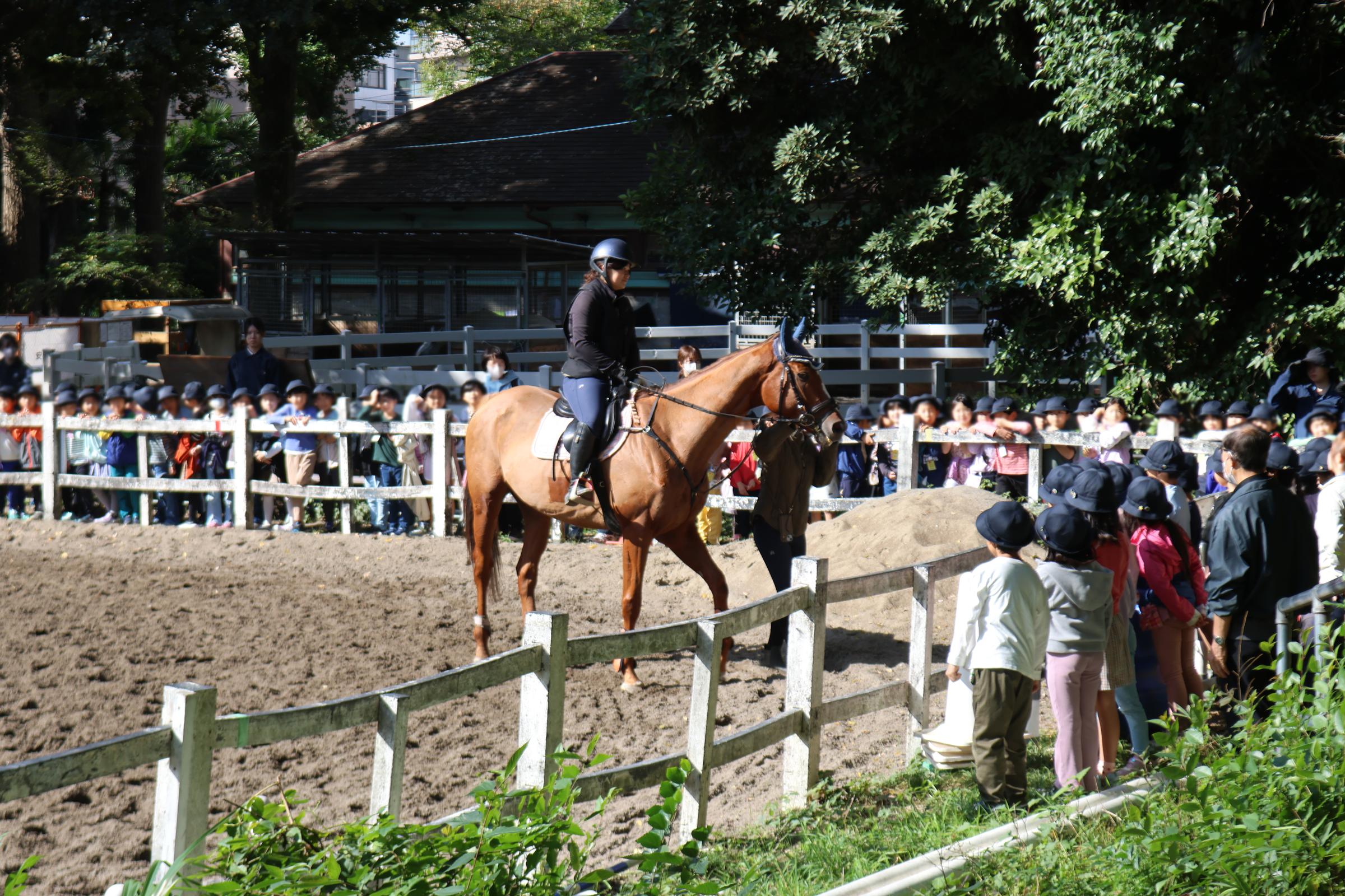 去る10月27日(月)、28日(火)に目白小学校の児童が、学習院大学目白キャンパスの厩舎見学に訪れました。